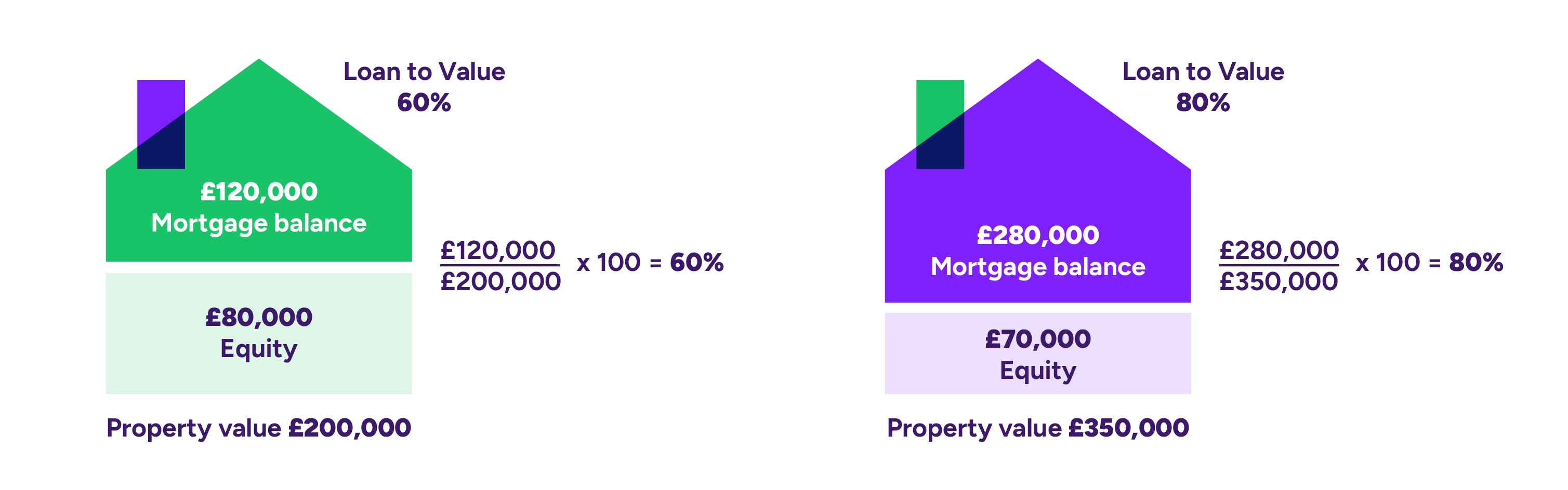 Examples of different Loan to Value calculations are shown below.